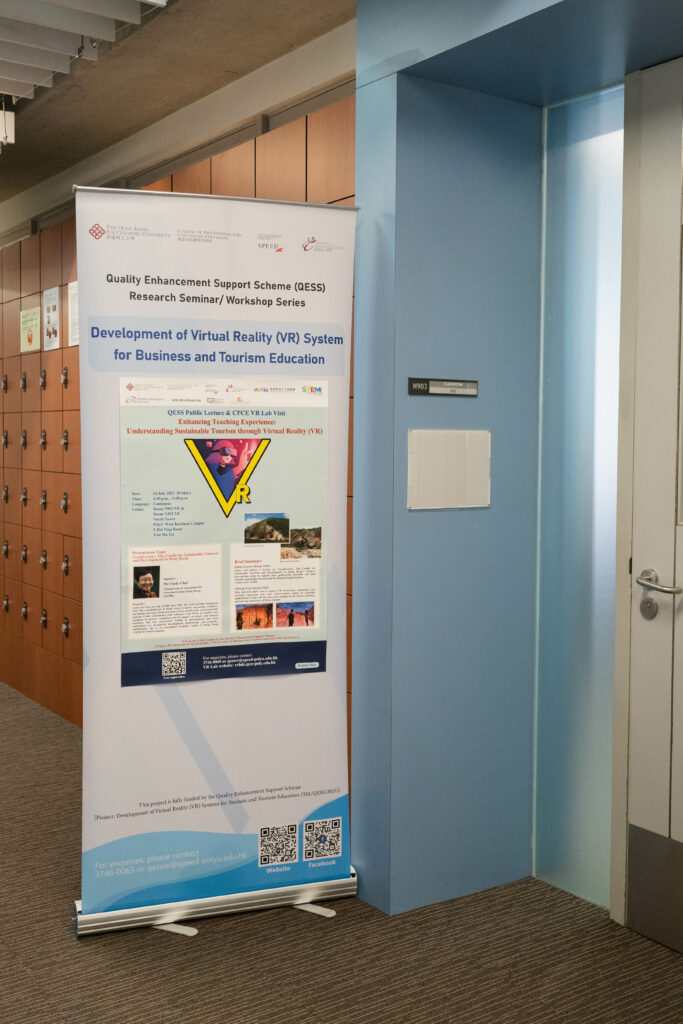 On July 14, 2023, we had the pleasure of hosting a captivating QESS Public Lecture and CPCE VR Lab Visit at the PolyU West Kowloon Campus. The event title was “Enhancing Teaching Experience: Understanding Sustainable Tourism through Virtual Reality (VR)”. Our guest speaker, Ms. Cindy Choi, Chairperson of the Association for Geoconservation, Hong Kong (AGHK), delivered an insightful talk on “Geodiversity: The Cradle for Sustainable Tourism and Development in Hong Kong”. We were pleased to see a diverse group of primary and secondary teachers in attendance, all eager to delve into the latest strides in VR technology. After the lecture, the attendees were treated to a hands-on experience in our VR Lab. They gained invaluable insights into how immersive technology can revolutionise the teaching and learning experience.