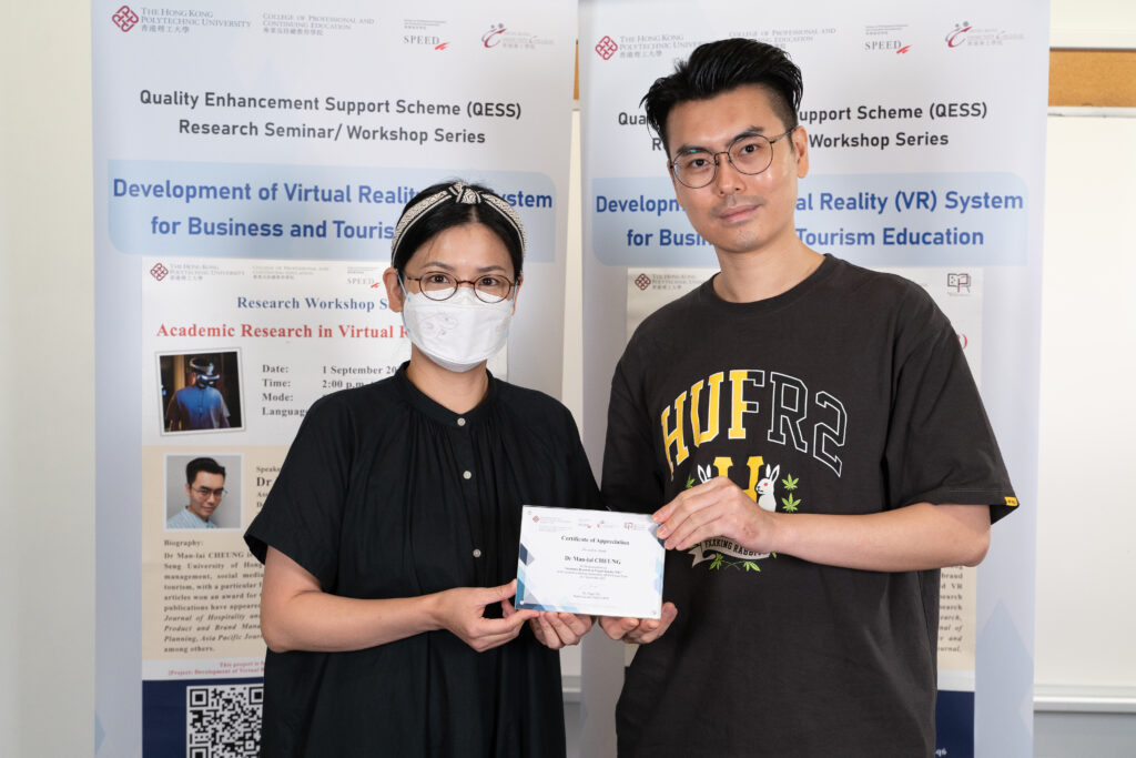 The first workshop “Academic Research in Virtual Reality (VR) ” was successfully held on PolyU West Kowloon Campus on 1 September, 2022.